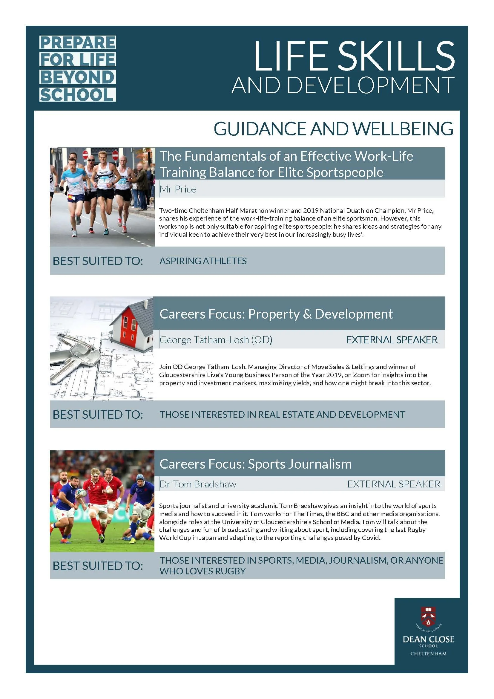 Dean Close proudly presents our 2021 U6 Prepare Week, a programme of academic seminars & lectures, talks, professional development workshops, career insight webmeets, and wellbeing activities, to provide you with some meaningful opportunities in which to invest your time and to support your transition into university, future training and beyond.